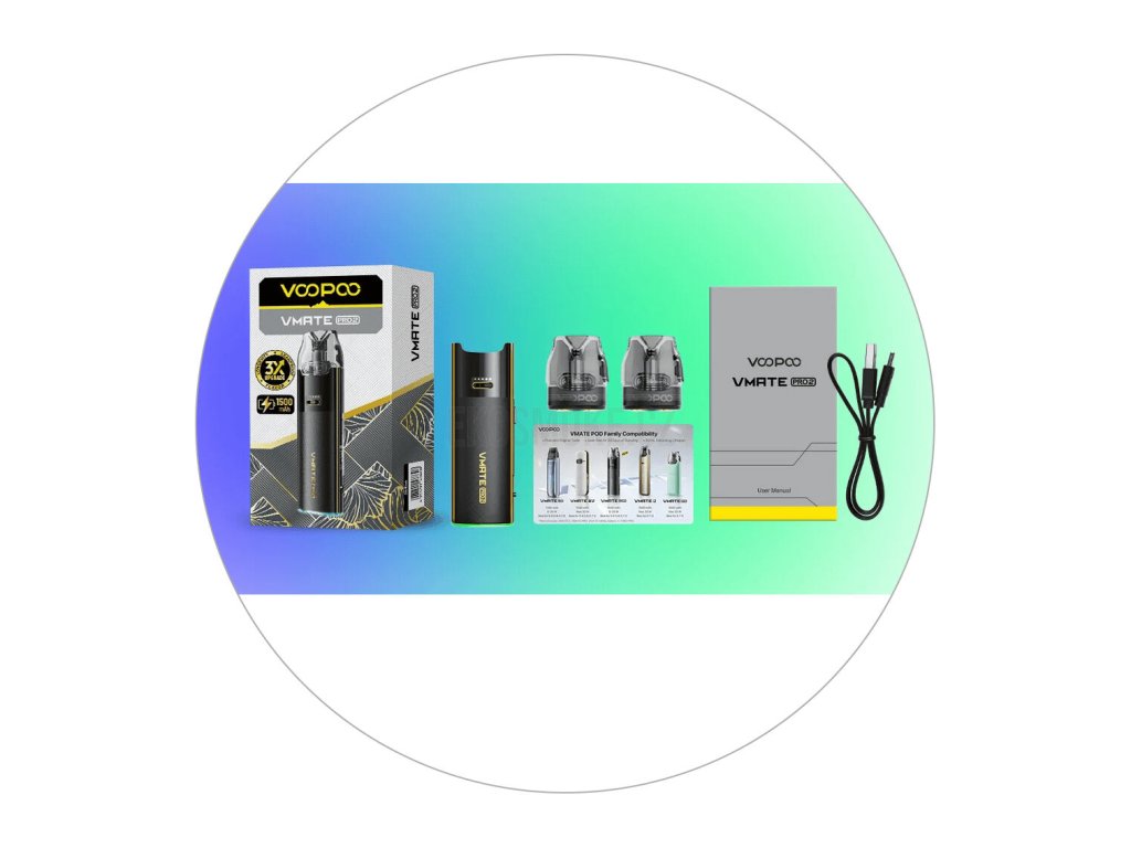 VooPoo Vmate Pro 2 je plně kompatibilní s kompletní platformou náhradních cartridgí VooPoo Vmate. Můžete tak na zařízení v klidu používat původní cartridge Vmate V2, ale i nové Vmate V3. Součástí balení jsou potom rovnou dvě nové cartridge Vmate V3 Top Fill, první nabídne odpor 0,4 ohm a je určena pro RDL vapování. Druhá disponuje odporem 0,7 ohm a použijí ji milovníci MTL potahu.