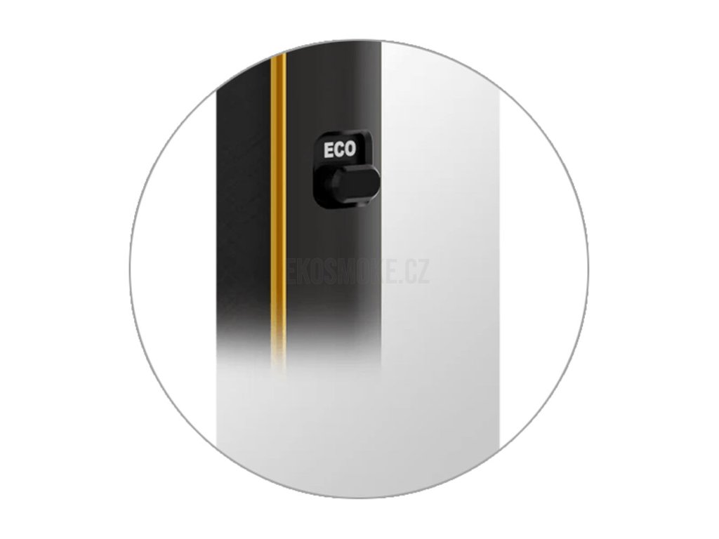 Oblíbený ECO režim je zpět. U e-cigarety najdete rovnou dva výstupní režimy, přičemž přepínání mezi nimi je snazší, než kdykoliv předtím. Na předním panelu najdete manuální přepínač, jedním pohybem prstu si tak přepínáte mezi výchozím režimem POWER nebo úsporným režimem ECO. V režimu ECO nastaví e-cigareta výkon automaticky za vás a zároveň dojde k potemnění displeje a snížení jasu, aby nedocházelo k nadměrnému přetěžování a vybíjení baterie.