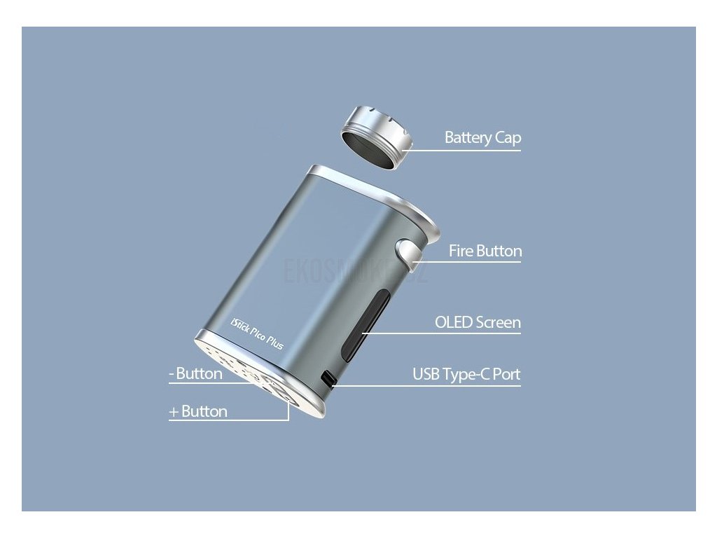 Nástupce oblíbeného iStick Pico, tentokrát s přívlastkem Plus. Vysoký nastavitelný výkon až 75W, na baterie typu 18650, rychlé USB-C nabíjení, OLED displej, závit 510. Baterie nejsou součástí balení. Barevné provedení Silver.