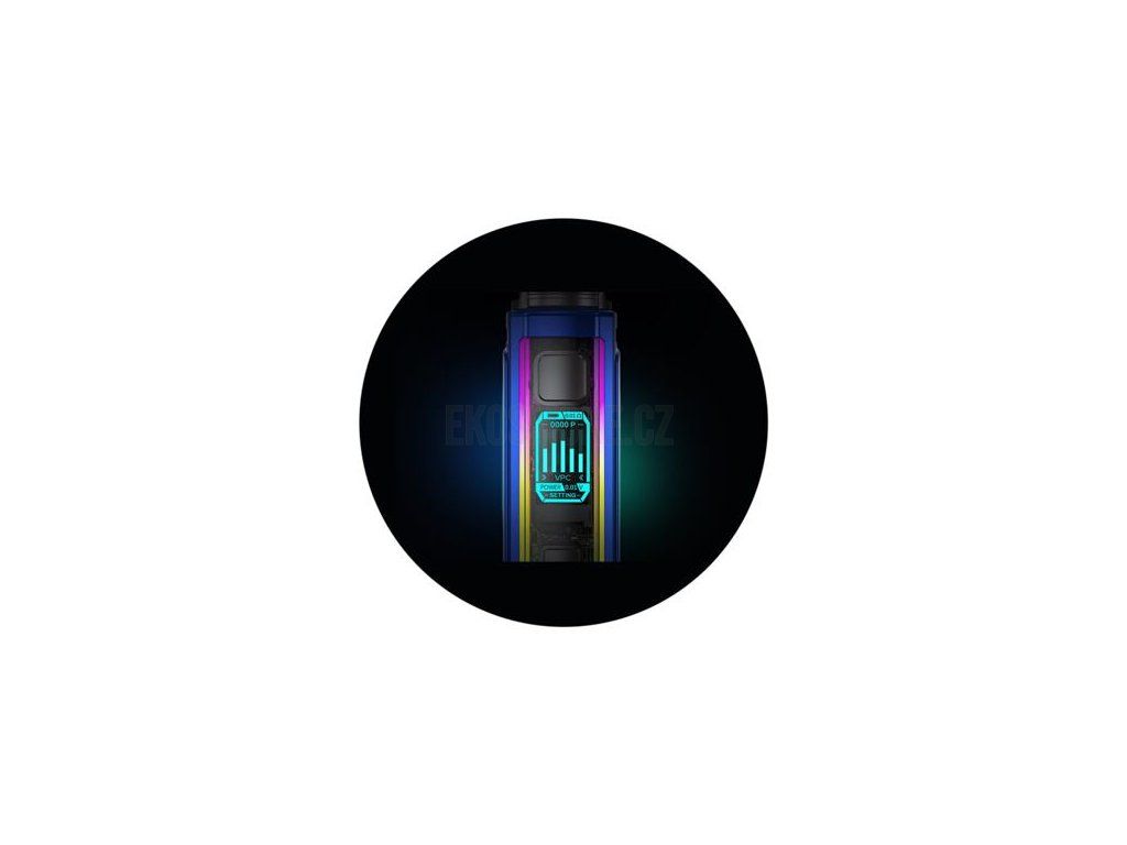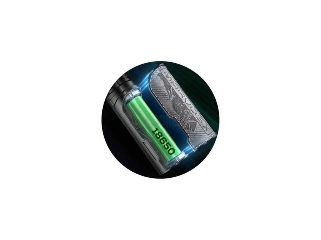 Zadní část modu je tvořena magnetickým krytem, po jehož odklopení odhalíte slot pro vložení vlastní externí baterie. Mod disponuje slotem pro jednu baterii typu 18650, po vložení baterie můžete začít využívat všechny jeho funkce naplno. Díky pohonu na jednu baterii si mod poradí s ohromujícím výstupním výkonem, který dosahuje až 100 W. Baterii můžete navíc pohodlně dobíjet přímo v modu díky portu USB-C přímo na těle zařízení.