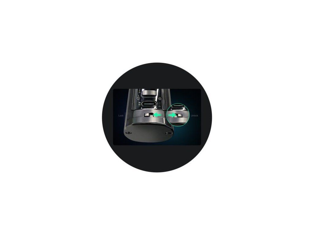 Ve spodní části modu se nachází praktický manuální zámek, který slouží pro odemčení, nebo uzamčení celého modu. V případě uzamčení zamkne ovládací regulační tlačítka, ale také spínací tlačítko. Mod tak nezačne žhavit sám od sebe, ani nepřenastaví navolené parametry při nechtěném sepnutí tlačítek při přenášení v kapse, nebo cestovním zavazadle. Jedná se o vynikající pomůcku při každodenním využití.