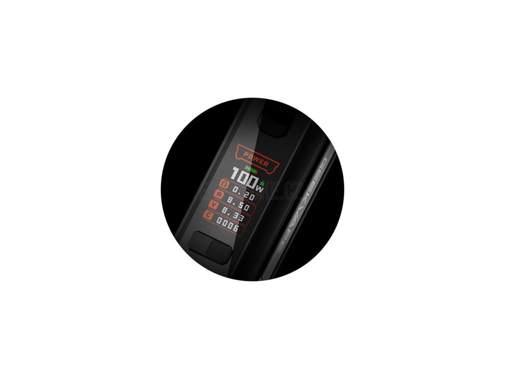 Přímo v přední části se potom nachází ovládací panel s velkým, celobarevným displejem. Na tomto displeji máte přehled o všech důležitých parametrech a zároveň si můžete nastavovat jeden ze tří výstupních režimů: Power, VPC a Bypass. Celé nastavení modu je nesmírně intuitivní a hravě si s ním poradí také začátečníci v oblasti elektronických gripů.