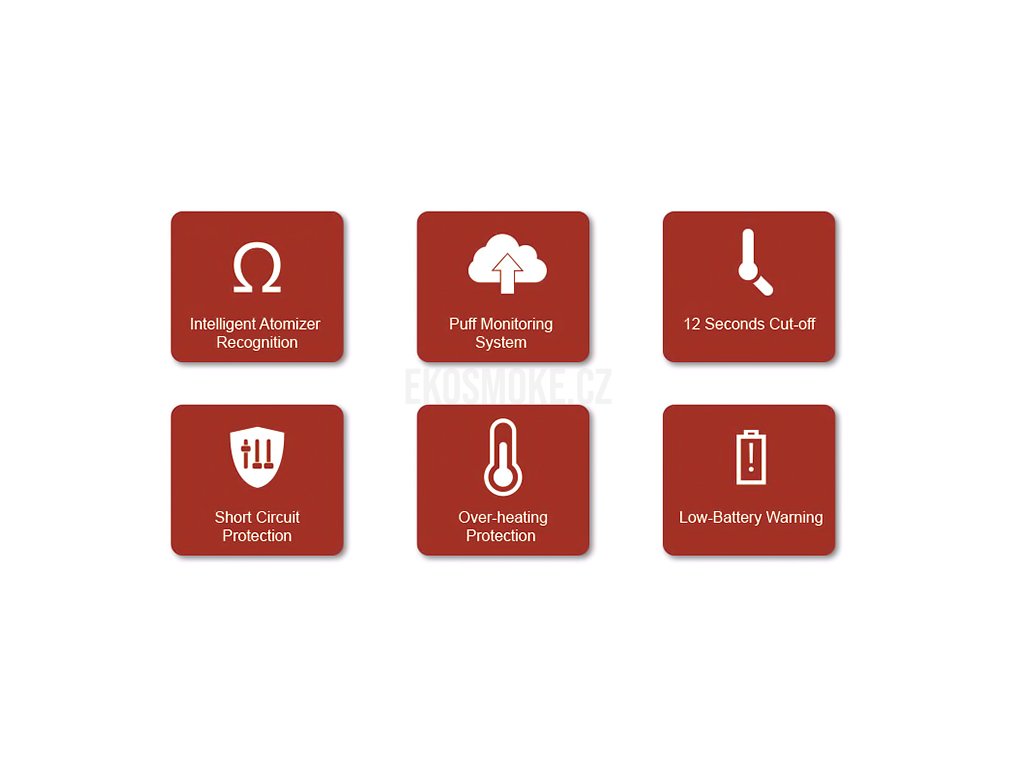 Jedinečnost tohoto zařízení podtrhuje také na první pohled patrný červený trojúhelník. Ten slouží jako aktivační tlačítko a umožňuje aktivaci gripu buď prsty, nebo dlaní. Displej a nastavovací tlačítka se nacházejí rovněž nezvykle na horní straně, hned vedle 510 konektoru. Ten je samozřejmě odpružený a poskytuje dokonalý kontakt kontakt s clearomizérem.