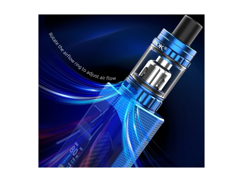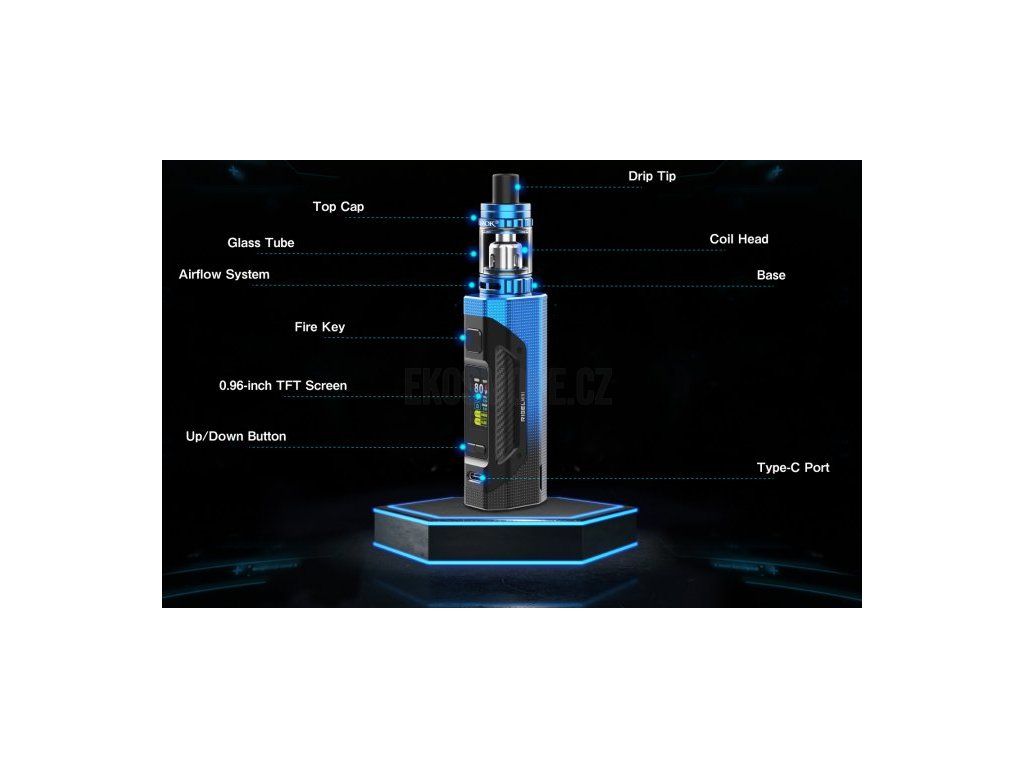 Není určeno pro náplně obsahující nikotin! Smoktech Rigel Mini je vynikající grip s maximálním výkonem až 80W napájený jednou baterií typu 18650, která je uložena pod zadním magnetickým krytem. Odlehčené tělo gripu ze slitiny zinku je pokryto pogumovanou vrstvou s bočními panely z uhlíkových vláken. Na přední straně gripu je umístěn 0,96 palcový dotykový displej se snadným ovládáním. Mezi jeho další přednosti patří ochrana proti zkratu a přehřátí, historie vapingu, či 8-mi vteřinová ochrana žhavení. Výrobce tento grip osadil clearomizerem TFV9 Mini, který spolupracuje se žhavícími hlavami typu V9 a TFV8 Baby. Využívá systém horního plnění - po odsunutí vrchní části plníte liquid otvorem přímo do těla clearomizeru o objemu 3ml. Celý clearomizer je plně rozebíratelný = snadná údržba. Regulace přívodu vzduchu pro nastavení optimální kouřivosti se nachází ve spodní části.