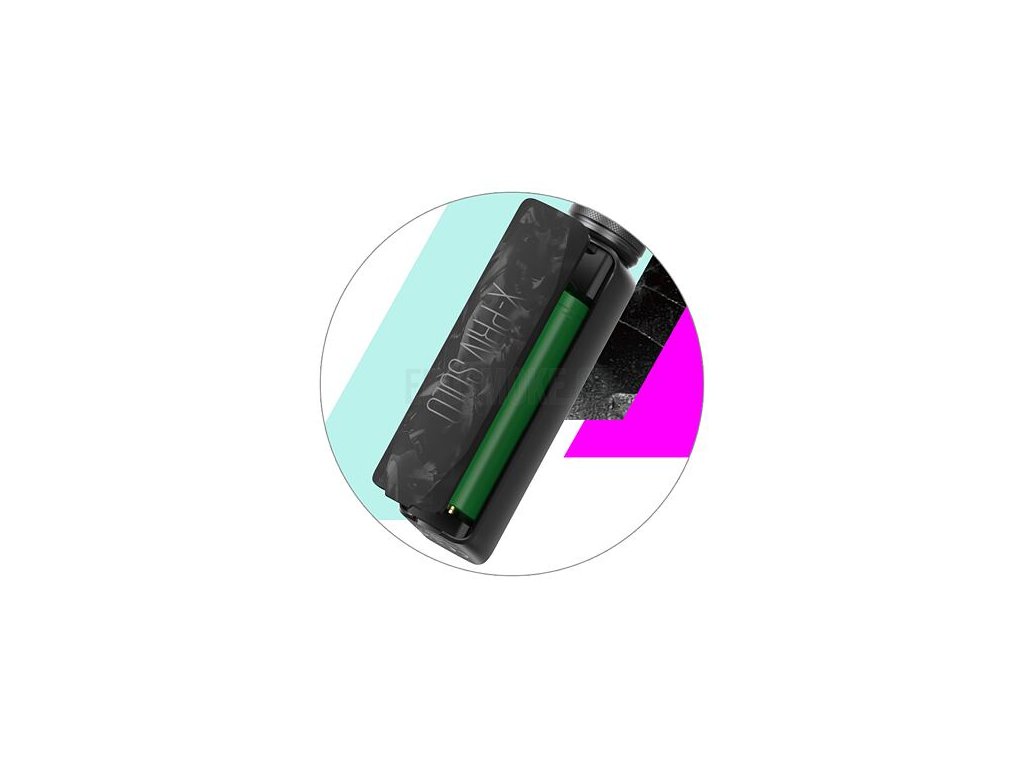 Boční panel se silnými magnetickými úchyty ukrývá slot pro vložení vlastní baterie. Mod pracuje s bateriemi typu 18650. Do těla si tak snadno zvolíte svou oblíbenou baterii tohoto typu dle vašich potřeb a můžete se těšit na obrovský výkon a hladký náběh žhavení s téměř instantní odezvou. Baterii si můžete také pohodlně dobíjet přímo ve vašem modu díky portu USB-C s podporou rychlého nabíjení.