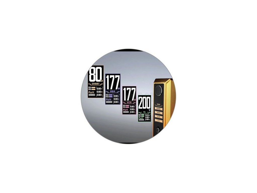 Ve vrchní části modu na vás čeká již tradiční závit typu 510, který si můžete snadno osadit kterýmkoliv atomizérem se stejným typem závitu. Díky bohaté nabídce výstupních režimů a pokročilé elektronice si mod skvěle rozumí nejen s tradičními atomizéry na tovární žhavící hlavy, ale také s pokročilejšími DIY atomizéry, jako jsou RDA, RTA a RDTA.