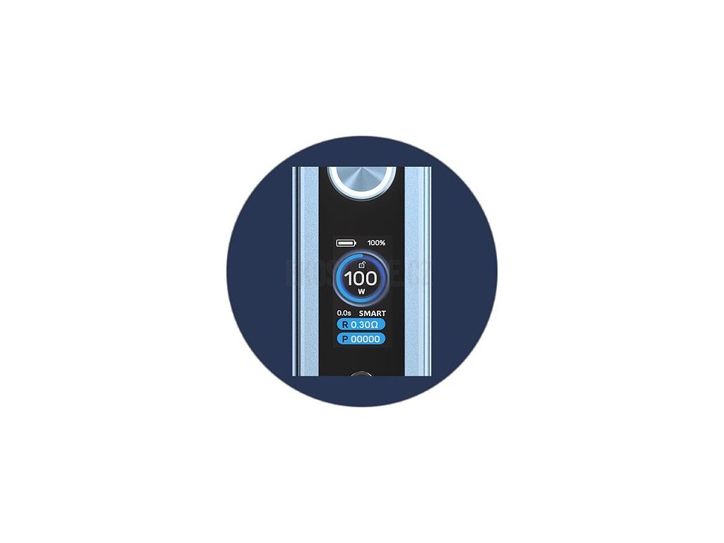 Tělo modu ukrývá slot pro vlastní externí baterii typu 18650. Po vložení vlastní baterie můžete začít naplno využívat všechny funkce modu. Největší předností je potom podpora obrovského výstupního výkonu až 100W s plnohodnotnou možností regulace, velice snadno a rychle si tak upravíte výkon podle potřeby a můžete si vychutnávat svůj oblíbený styl potahu.