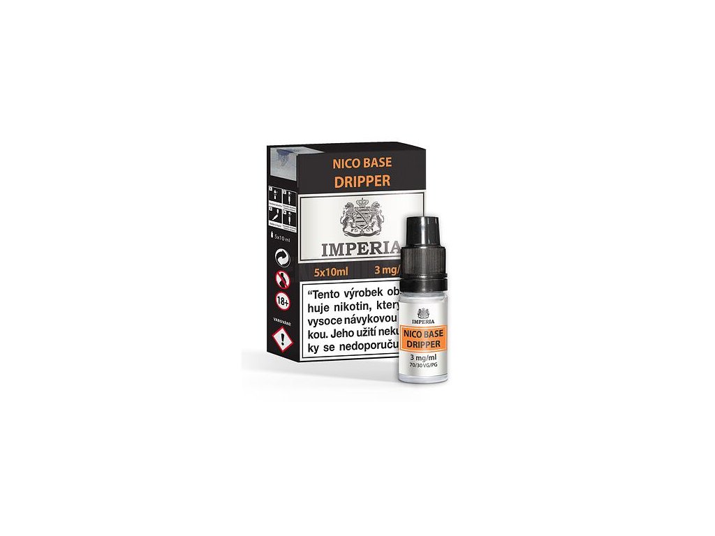 Imperia Dripper je báze s vysokým obsahem glycerolu (VG 70%) a nízkým procentem propylenglykolu (PG 30%). Díky speciálnímu poměru vytváří velké množství husté jemné páry a je vhodná především pro cloud-chasing a dokapávací RDA atomizéry.