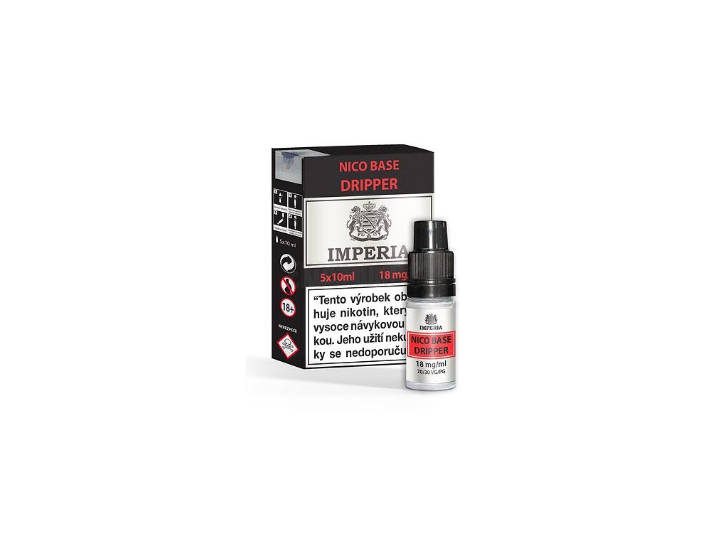 Imperia Dripper je báze s vysokým obsahem glycerolu (VG 70%) a nízkým procentem propylenglykolu (PG 30%). Díky speciálnímu poměru vytváří velké množství husté jemné páry a je vhodná především pro cloud-chasing a dokapávací RDA atomizéry.