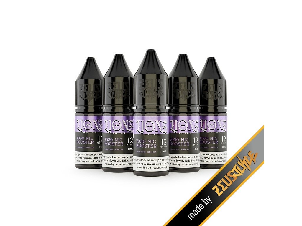 Vysoce prémiový nikotinový booster shot Lions Juice představuje dokonalé řešení pro všechny uživatele elektronických cigaret, kteří chtějí mít plnou kontrolu nad nikotinovou silou svých oblíbených shortfillů, e-liquidů a vlastních vapovacích směsí. Tento vysoce kvalitní booster v praktickém balení 5×10ml lahviček obsahuje 12mg/1ml klasického nikotinu, který poskytuje silnější tradiční nikotinový zážitek s výrazným a intenzivním hitem v krku, což ocení především zkušení vapovači, pokročilí uživatelé DTL zařízení a náročnější mixéři, kteří preferují vyšší nikotinovou sílu s klasickým nikotinovým pocitem. Díky speciálně optimalizovanému poměru VG/PG 70/30 je tento produkt ideální především pro DTL (Direct-to-Lung) styl vapování a subohm zařízení, kde zajišťuje maximální a hustou produkci páry s výbornou chuťovou intenzitou a silným uspokojivým nikotinovým hitem s charakteristickým výrazným škrábáním v krku typickým pro klasický nikotin vyšší koncentrace. Každá jednotlivá lahvička je pečlivě vyrobena britskou společností Zeus Juice, kterou určitě znáte jako výrobce těch vůbec nejoceňovanějších e-liquidů a Shake & Vape příchutí na trhu. Boostery a báze Lions Juice jsou vyrobeny s využitím nejkvalitnějších farmaceutických surovin včetně vysoce čistého klasického nikotinu a za nejpřísnější kontroly celého výrobního procesu podle současných evropských standardů TPD a mezinárodních norem kvality. Lions Juice booster shot vznikl díky mnohaletým zkušenostem renomované britské společnosti Zeus Juice, která se od roku 2011 specializuje na výrobu prémiových e-liquidů, a díky důrazu na absolutně maximální kvalitu ingrediencí z ověřených a renomovaných zdrojů, což zaručuje nejen konzistentní a spolehlivé výsledky, ale také výjimečný, plnohodnotný a bezpečný vape zážitek při každém jednotlivém použití tohoto prémiového produktu určeného pro vaše domácí míchání kvalitních e-liquidů a personalizaci při výrobě vlasních e-liquidů.
