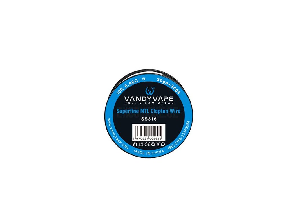 MTL Superfine Clapton je speciální odporový drát vyrobený společností Vandy Vape. Jedná se o extrémně tenký drát s rychlým náběhem žhavení a použitím pro klasické šlukování. Použít ho můžete například v atomizéru Vandy Vape Berserker, či v jiných MTL atomizérech typů RTA, RDA a RDTA. Drát je vyroben z nerezové oceli v provedení Clapton. Vnitřní průměr drátu je 30GA (0,25mm) a vnější drát nabídne průměr 38GA (0,1 mm).