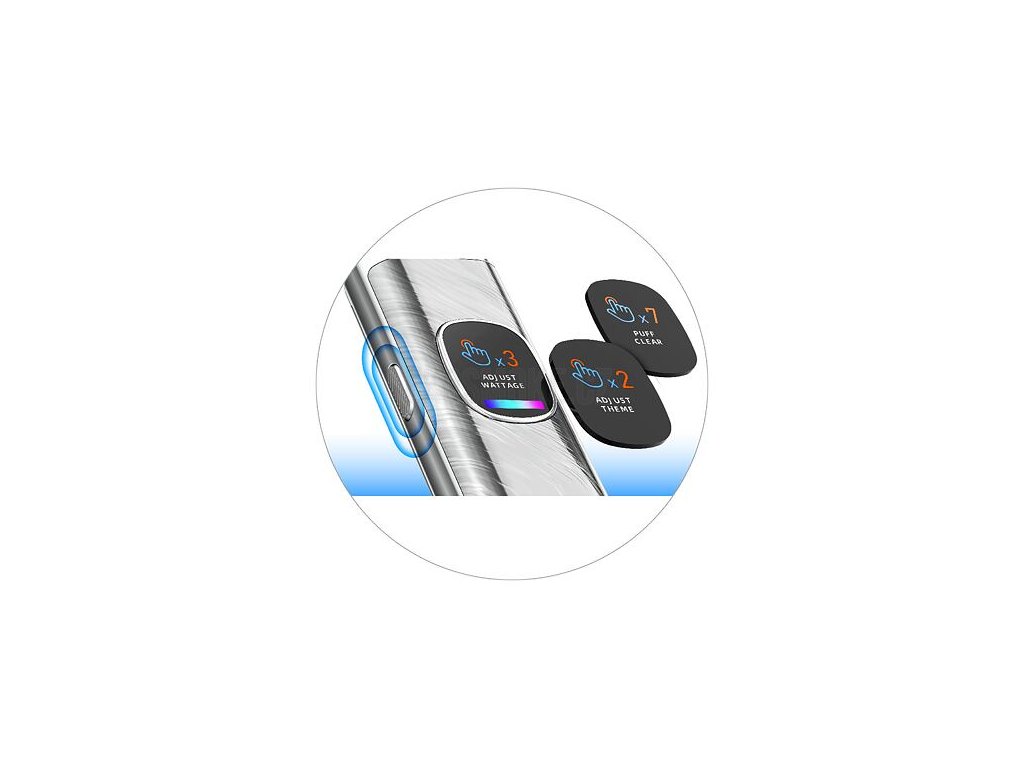 Jedna z bočních částí e-cigarety Xlim Pro 2 disponuje velkým ovládacím tlačítkem, které slouží pro ovládání a nastavení e-cigarety. Pomocí tlačítka si snadno upravíte výstupní výkon, změníte schéma celého zařízení, nebo si můžete vynulovat počítadlo potahů. Tlačítko slouží také pro rychlé zapnutí a vypnutí tradičním stiskem 5x rychle za sebou.