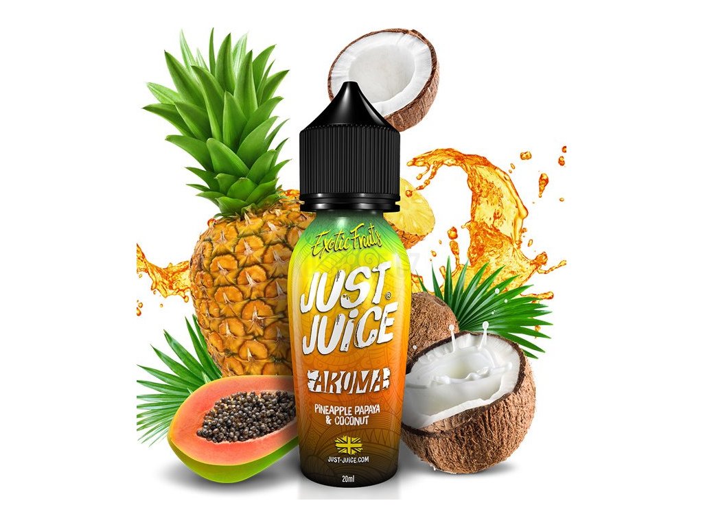 Dechberoucí blend ovocných chutí (ananasu, papáji a kokosu)... Britské příchutě Just Juice jsou velice oblíbené a vyhledávané po celé Evropě. Jsou dodávány v 60ml lahvičkách, které obsahují 20ml koncentrátu. Uživatel tak pouze přidá bázi do lahvičky, zatřese s ní a má hotový e-liquid.... Jedná se o koncentrát, který se kape do báze. ...nejedná se o hotový liquid.