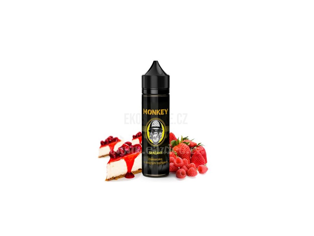 Příchuť Monkey S&V: Seržant (Cheesecake s jahodovo-malinovým topingem) objem 10ml tabáková nálepka Kolek Q