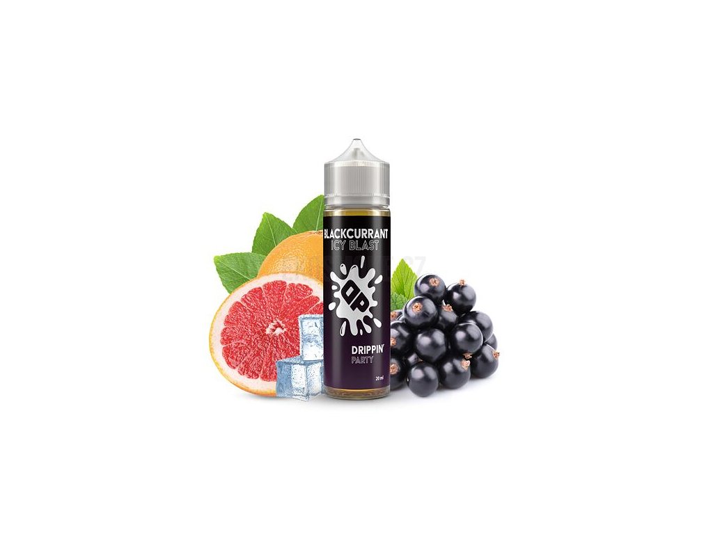 Příchuť Drippin Party S&V: Blackcurrant Icy Blast (Černý rybíz a grapefruit s mentolem) objem 10ml tabáková nálepka Kolek Q