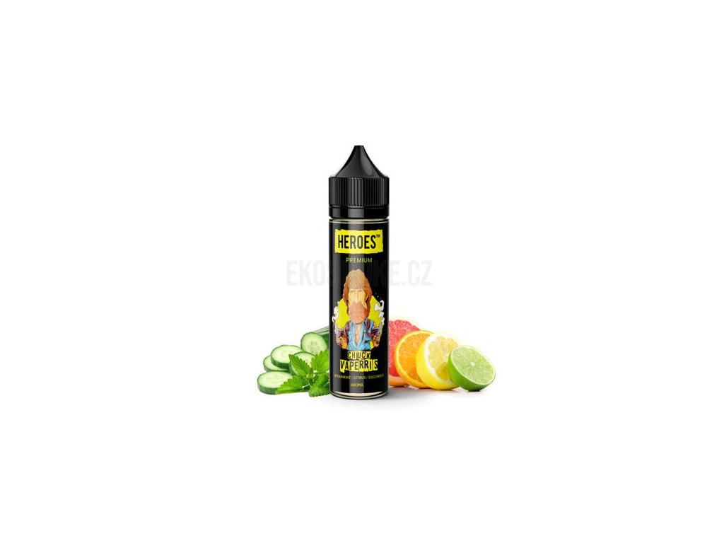 Příchuť ProVape Heroes S&V: Chuck Vaperris (Máta, citrusy, okurka) objem 20ml tabáková nálepka Kolek Q